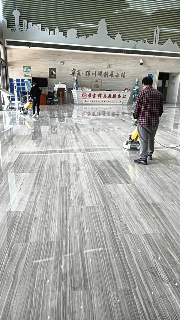 我司承接銀川市民大廳規(guī)劃展大理石結(jié)晶保養(yǎng)
